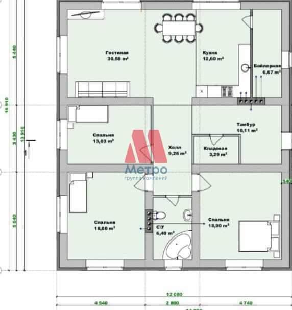 Три уютные спальни (18.9/18/13.3 кв.м. ) : В каждой спальне достаточно места для комфортной жизни. Из окон открывается живописный вид на сад.