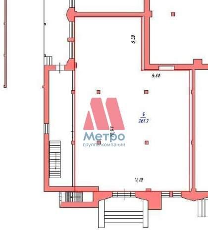 Площадь - 261м. Помещение имеет собственный кадастровый номер, два независимых входа (один с лицево стороны , второй с торца для разгрузки или запасной выход) , что позволяет гибко организовать поток клиентов и персонала.