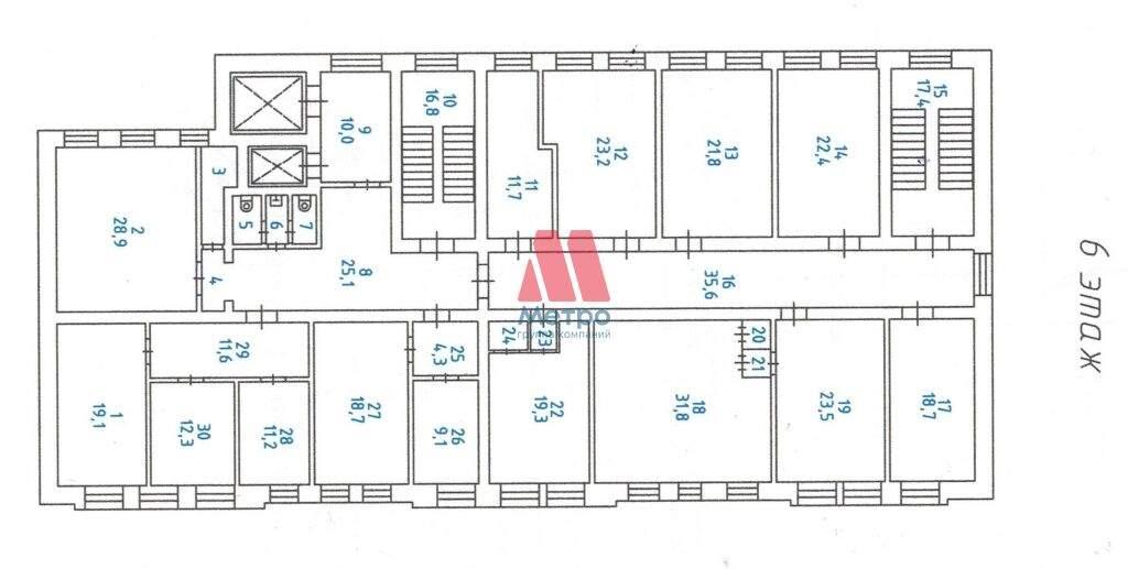 6 ой этаж полностью, общая площадь 405,2 кв.м.