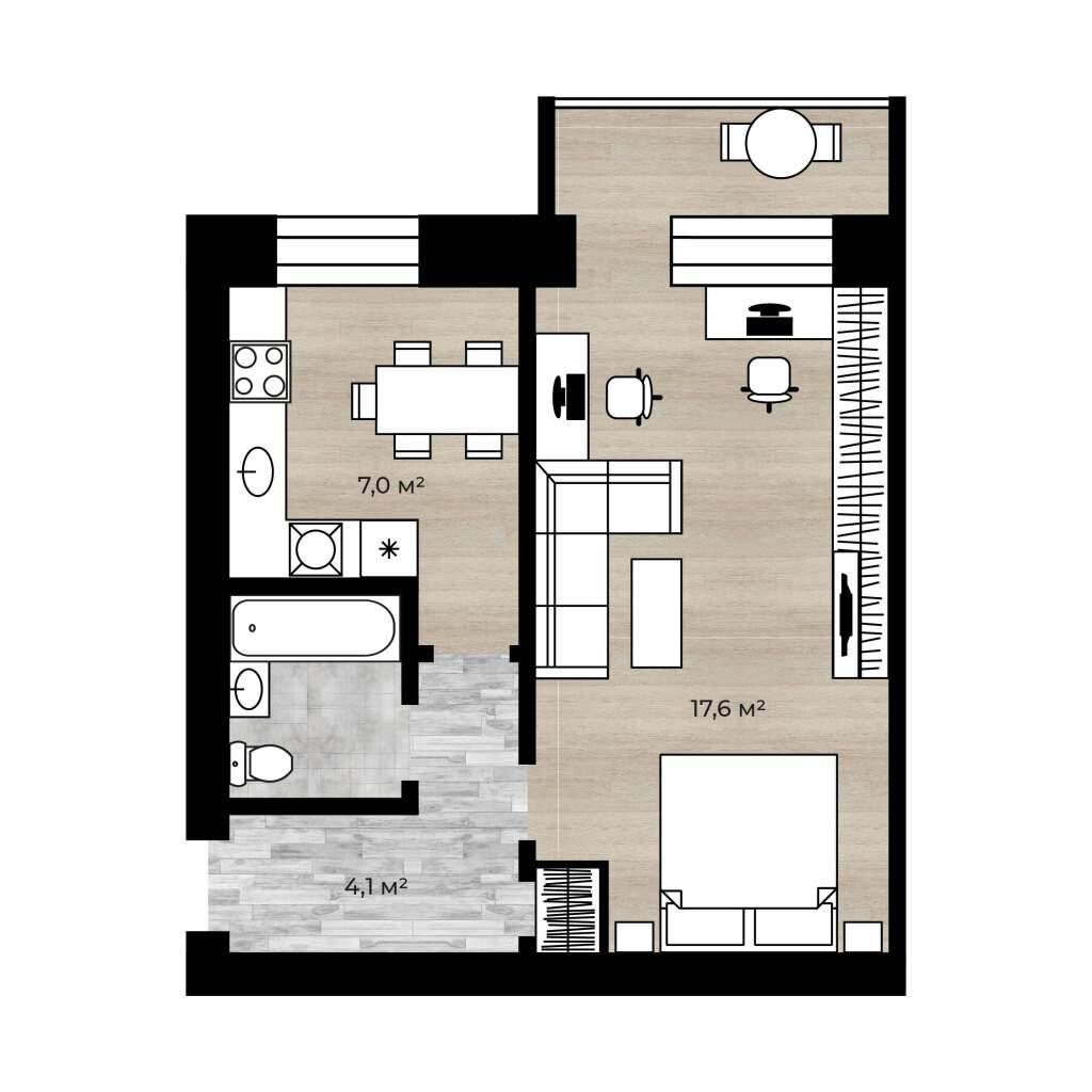 общая 32 м2, жилая 17,6 м2, кухни 7 м2 |