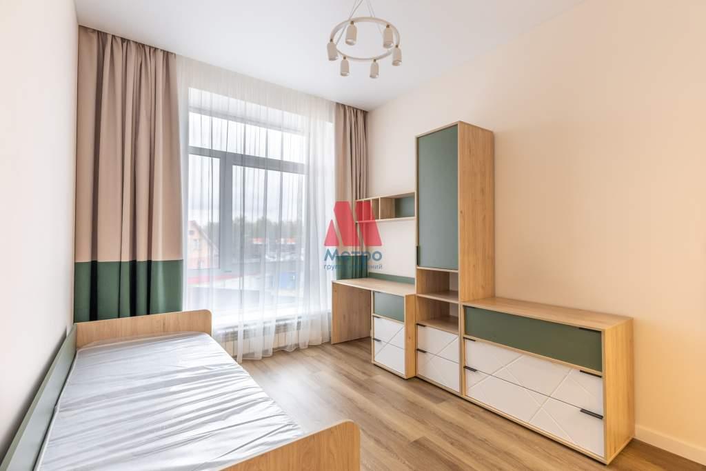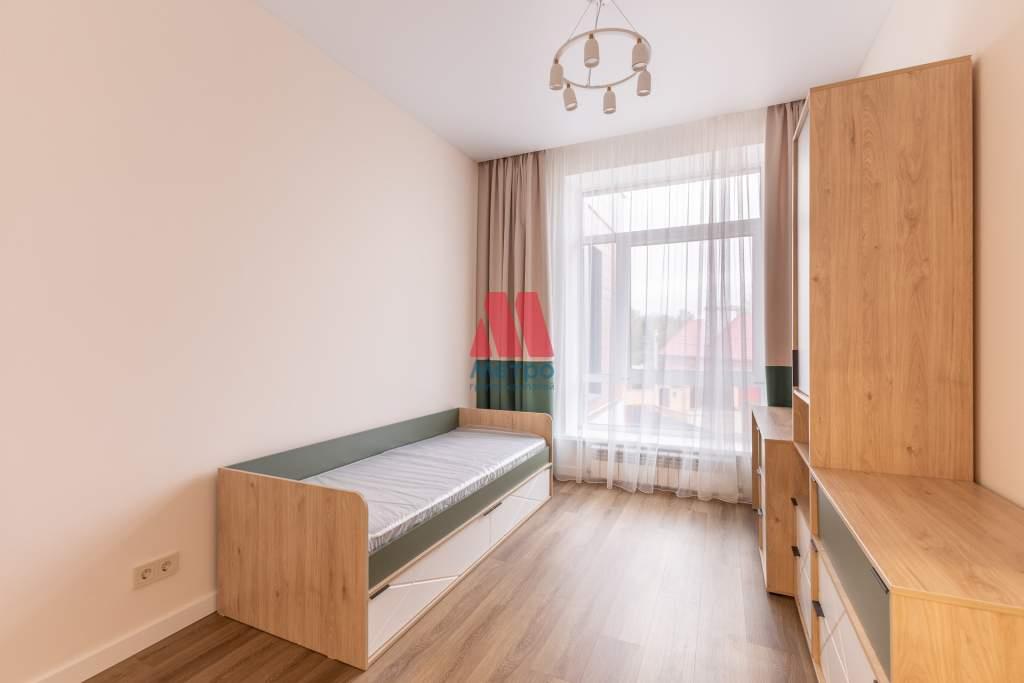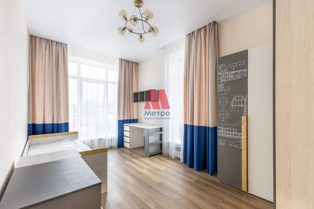 Здесь расположена просторная родительская спальня с вместительной гардеробной системой и две детские комнаты, полностью готовые к проживанию. У детей есть всё: письменные столы, системы хранения и полки для книг.