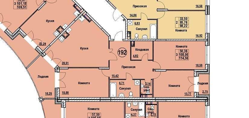 общая 114,56 м2, жилая 50,36 м2, кухни 28,51 м2 |